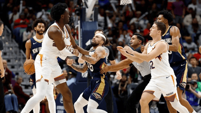 虎撲12月28日訊 今天NBA常規(guī)賽太陽(yáng)客場(chǎng)對(duì)陣鵜鶘的比賽已經(jīng)結(jié)束。全場(chǎng)戰(zhàn)罷,戰(zhàn)勝太陽(yáng)以123-114戰(zhàn)勝鵜鶘。得連第
